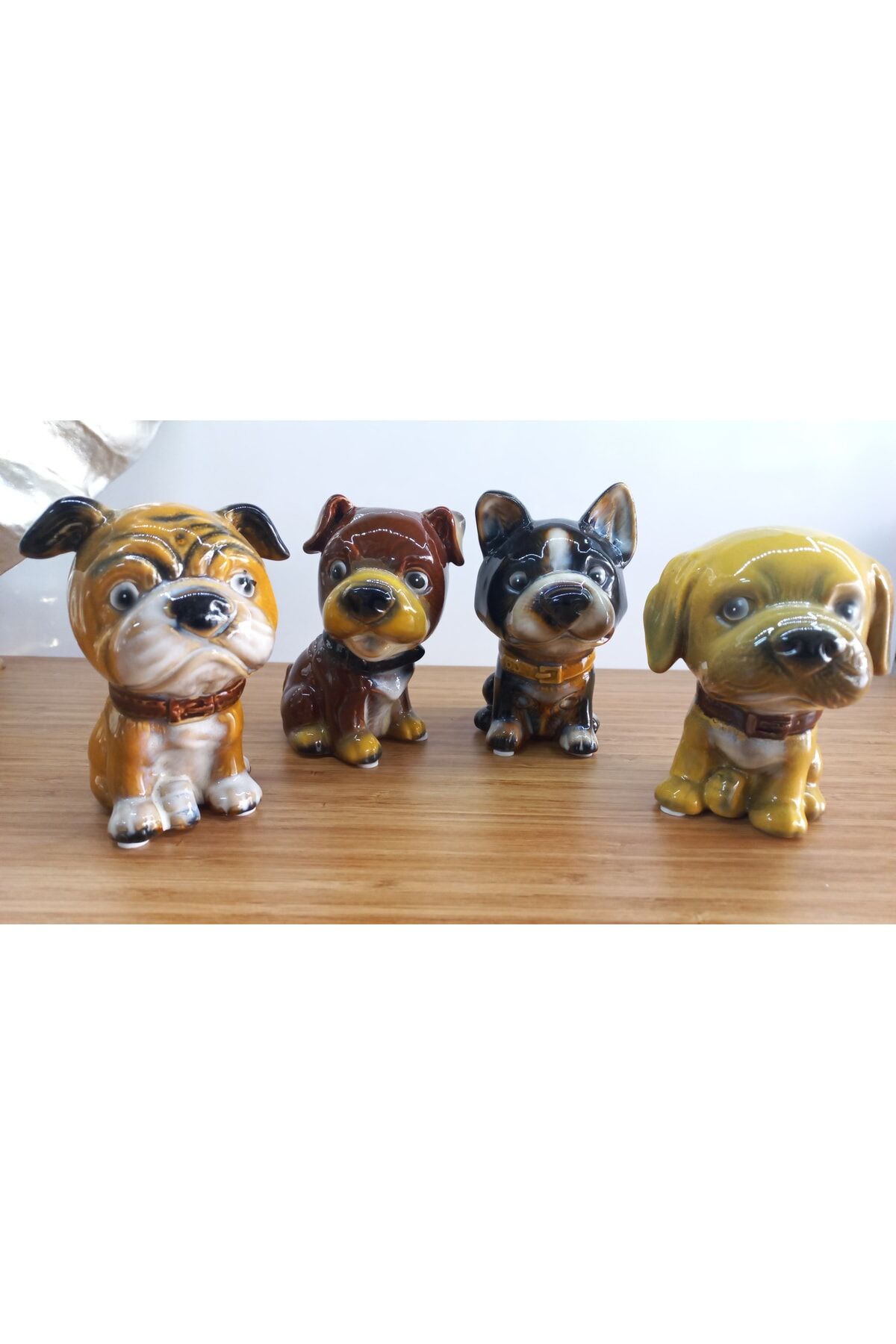 Zarif tasarımıyla evinizin dekorasyonuna şık bir dokunuş katan dört adet porselen köpek figürü.; Yüksek kaliteli porselen malzemeden üretilmiş olup uzun süreli kullanım için idealdir.; Her köpek figürü ayrı ayrı tasarlanmış olup, farklı stillere sahip dört köpeği ile dikkat çeker.; Bu biblolar, sevdiklerinizle paylaşabileceğiniz anlamlı hediyeler veya özel günlerde hediye olarak tercih edilebilir.; Porselenin dayanıklı yapısı sayesinde kolayca temizlenebilir ve uzun süre ilk günkü gibi kalır.; Evinizin her köşesine uyum sağlayacak bu dekoratif objeler, hem görsel zevkinizi artırır hem de mekanınıza sıcaklık katar.;