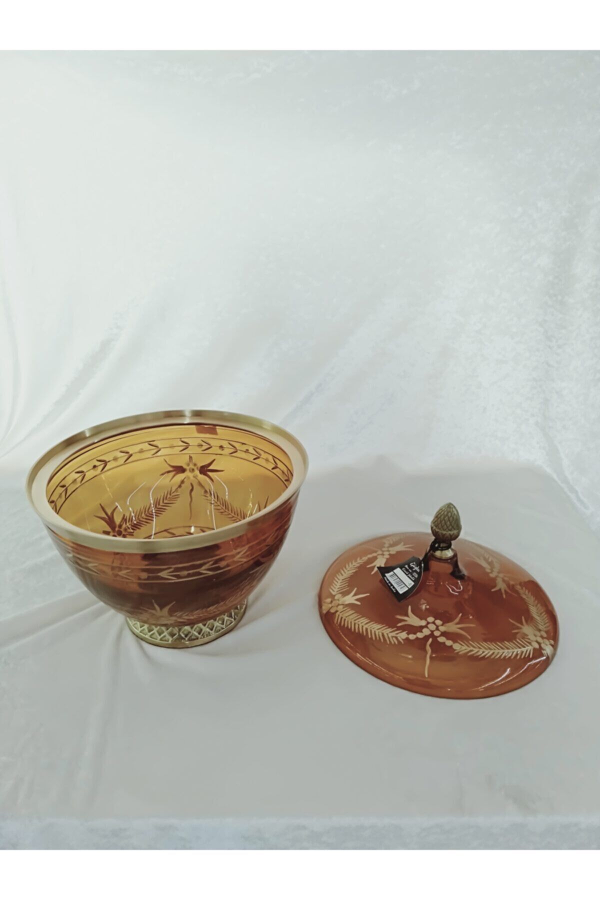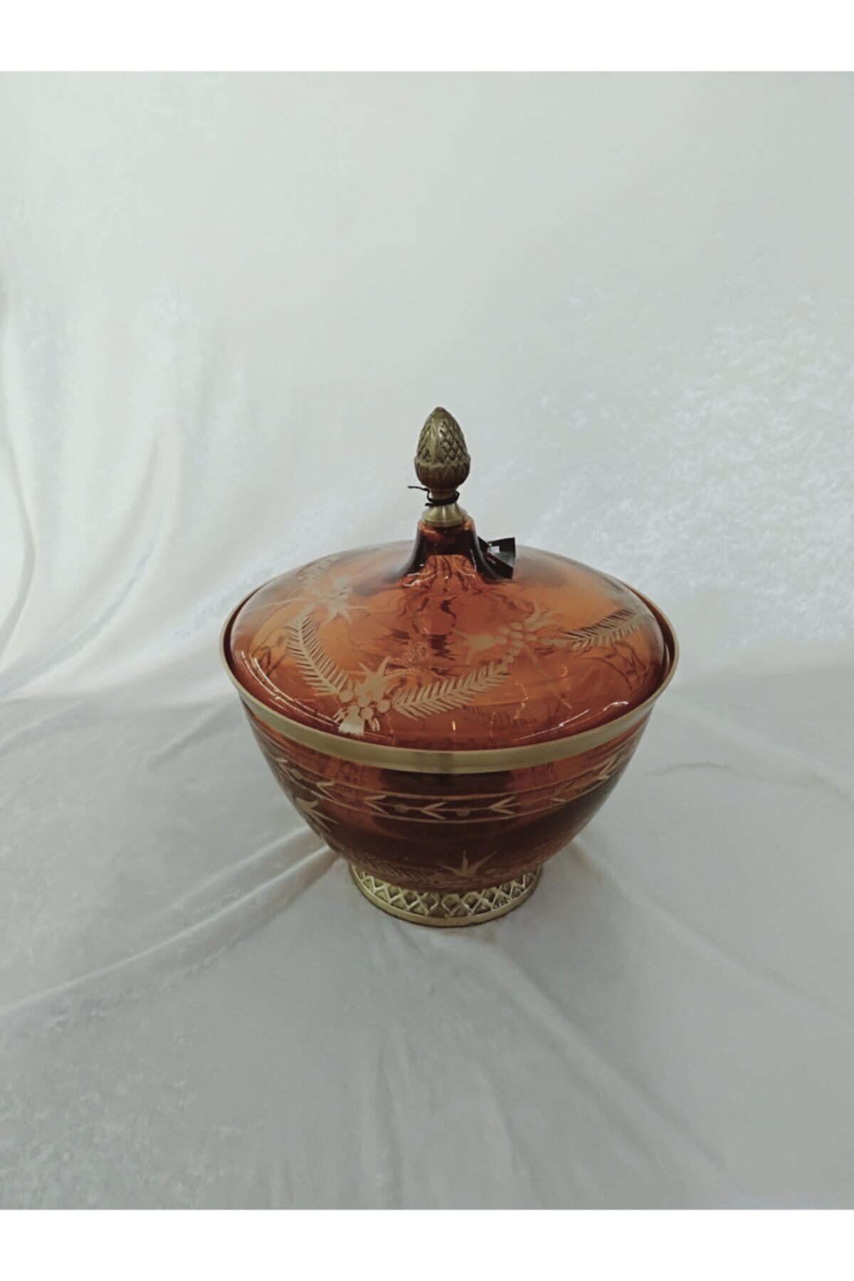 Pirinç ayaklı,cam kapaklı şekerlik.yüksekliği 24 cm,çapı 21cm.