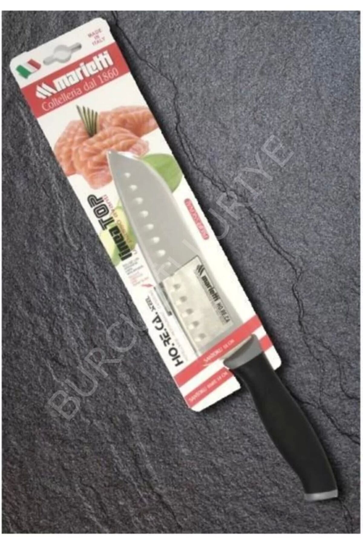 Marietti santoku bıçak 18 cm 1235tptamamı uzunluk: 31 cmsap uzunluğu: 14 cmbıçak en : 4.5 cm
